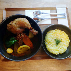 平日の12時過ぎに到着。 当初100年食堂と言われているお店にしようと思ったが、本店がこの地にあって道内に6店舗展開しているこちらのカレー店に興味を持って来店。 やはりこちらも雁木のある街並みの中にあった。 時間的にどうかと思ったが、卓席が空いていた。 数量限定の鹿肉麻婆と迷ったが、やはりお店のウリと思われる掲題のメニューを、ライス普通・... 続きを見る